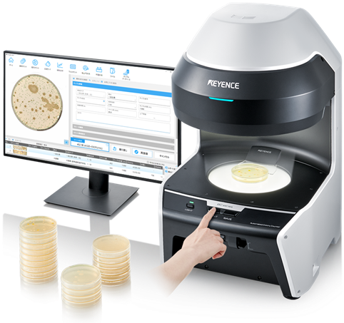 さきほどの「コロニー」の写真を見て、ピンときた人がいるかもしれません。この写真、画像解析したらコンピューターがコロニーの数を数えてくれるんではないか、と。そうなんですよ。実はコロニーを数える画像解析ソフトウェアというのも、そこそこ昔から発売されています。さらに写真撮影装置とコンピューター、ソフトウェアが一体化した全自動の専用機もあるんです(図11)。しかし、人間の目にはコロニーとゴミの見分けは簡単ですが、ソフトウェアではなかなか難しいのです。また、2個のコロニーが隣接すると「ひょうたん型」になります。3つだと「三つ葉のクローバー」みたいになっちゃうこともあります。人間はそれが2つ、3つのコロニーであると正確に判断できるんですが、画像解析ソフトはそう簡単にはいきません。いろいろパラメーターの設定が必要なんです。実はこれは昔から試行錯誤されていて、たとえば直径の範囲を決めたり、真円度といって、丸い物体の縦と横の長さの比を計算して丸くないやつはゴミと判断したり、というような計算処理をするわけです。