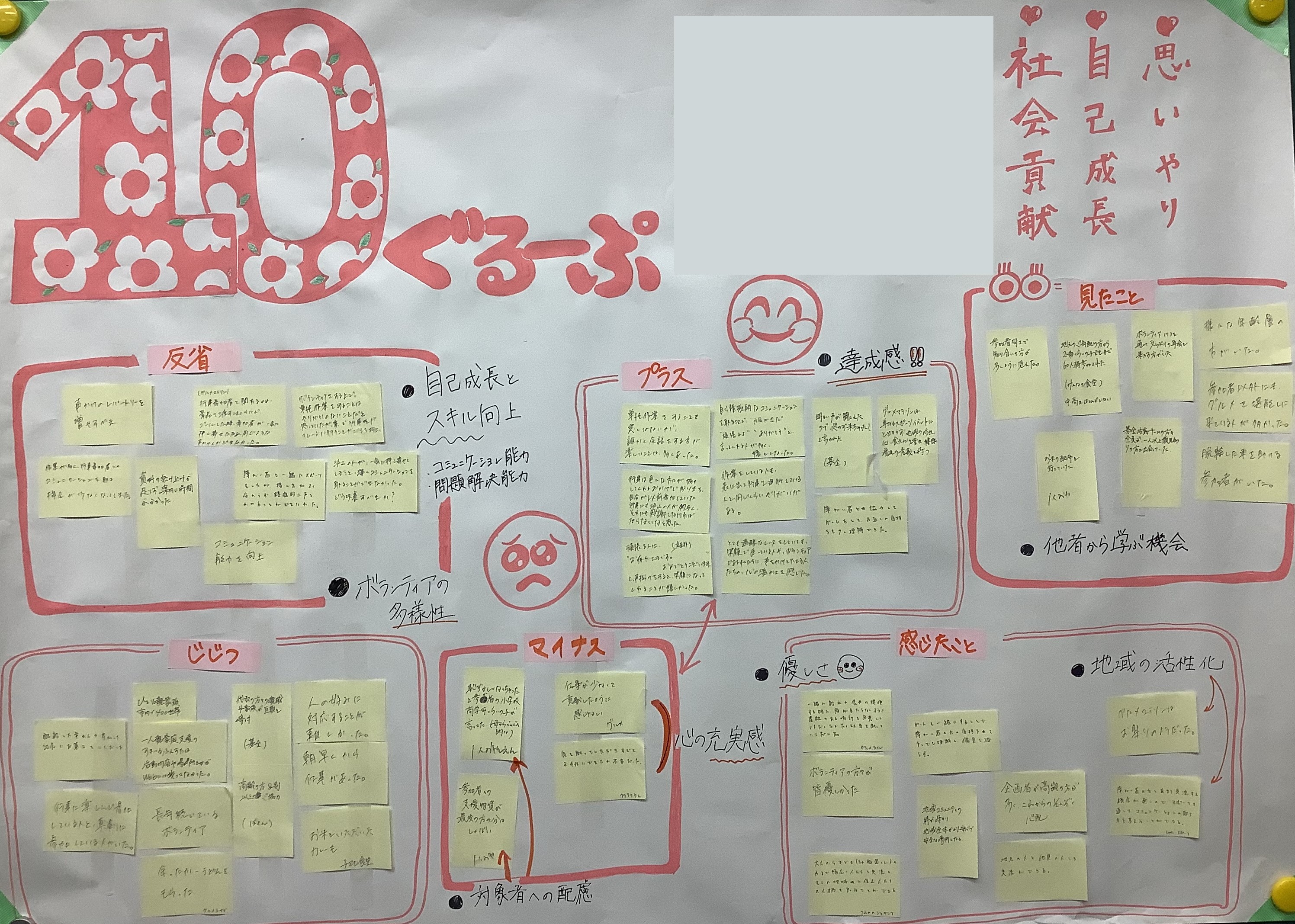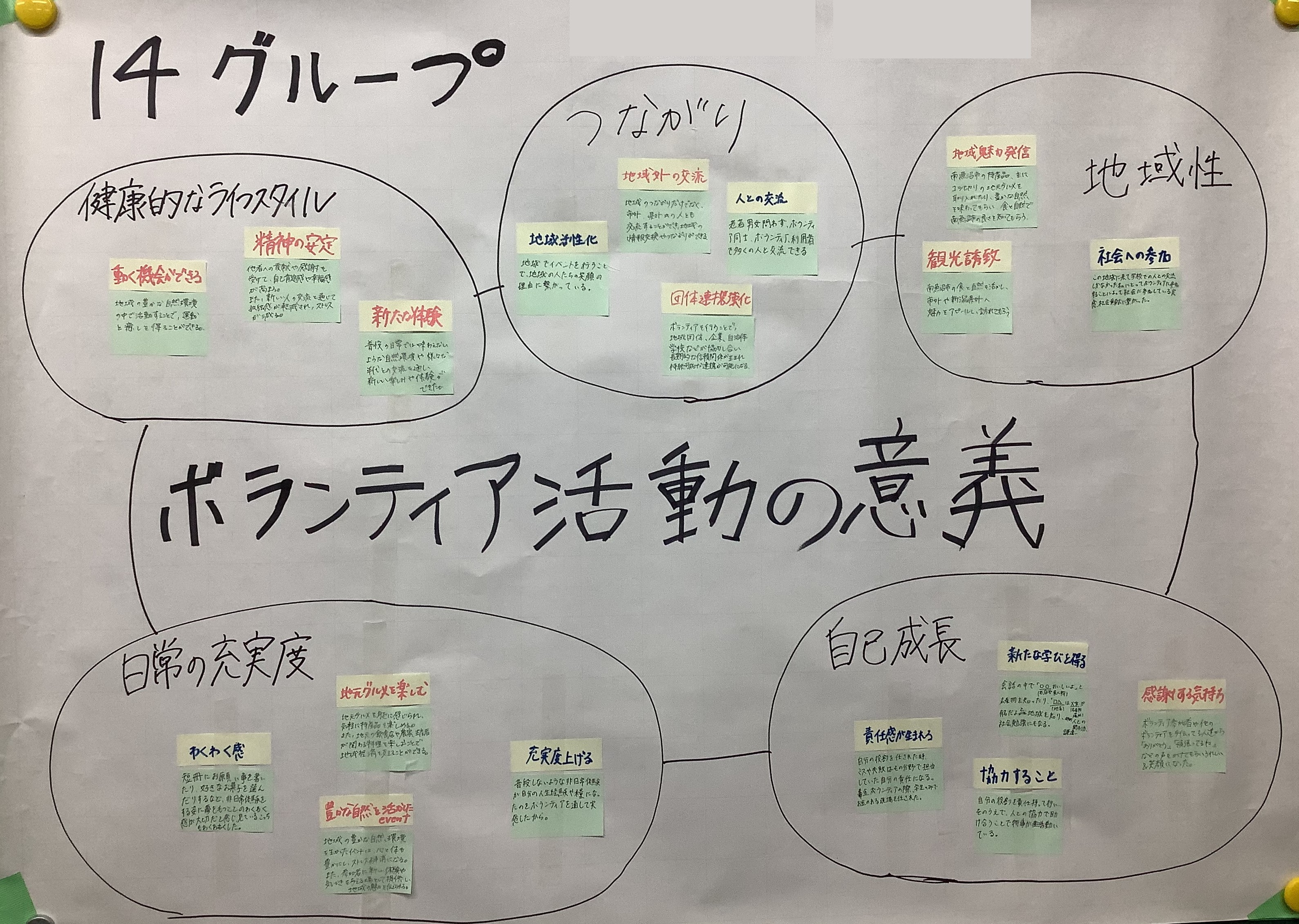 学生からは「意見を出し合っているうちに、自分では気づかなかった視点を知ることができた」「付箋を並べ替えていると、活動の全体像が見える瞬間があった」という感想が寄せられました。