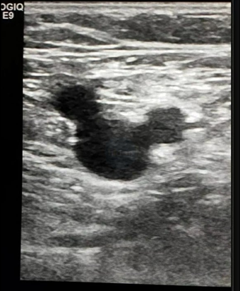 ところがこれ、大腿部のエコーでも同じ名前の画像所見があるようです。こちらは図5のような感じで、総大腿動脈(common femoral artery)、総大腿静脈(common femoral vein)と大伏在静脈(great saphenous vein)の3つ、と書かれていますね。ディズニーさんは著作権にたいへん厳しくて、マルを3つ重ねてそれらしくなってしまっただけでも「アウト!」っていうような都市伝説を聞いたことがあるんですが、この画像、大丈夫でしょうか。自然現象(?)ですもんね、いけますよね。