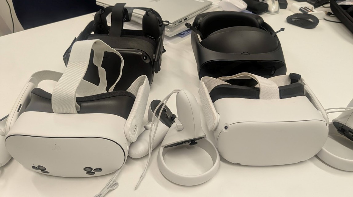 そこで私が着目したのが、VR技術でした。 VRの特徴は、360度の映像と音声により、あたかもその場にいるかのような圧倒的な没入感を生み出せる点にあります。VRゴーグル(図1)を装着した瞬間、学生は「看護学生」ではなく、「術後のベッドに横たわり、身体を拘束され、恐怖の幻覚に襲われる一人のせん妄患者」に変身します。