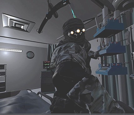 これらの過程を経て完成したVRコンテンツは、夜のICUのベッド上が舞台です。 体験者がゴーグルを装着すると、そこは術後のICUのベッドの上です。自分の体を見下ろすと、たくさんのチューブが繋がれています。耳元では心拍監視装置のモニター音が鳴り響いています。