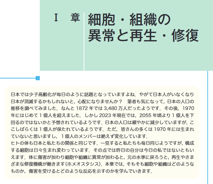 - 各章の冒頭に導入文を設け、病理学の知識を身近な医学・医療などの題材にからめて解説し、学習内容への関心を引き出します。